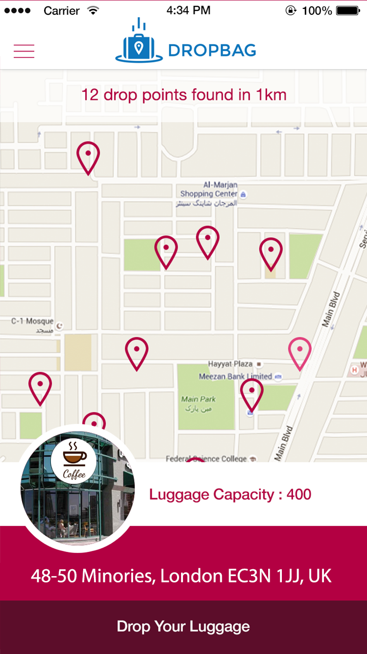 DropBag app luggage offers you a range of locations where you can drop your bags. These are trusted local shops and hotels with extra space.