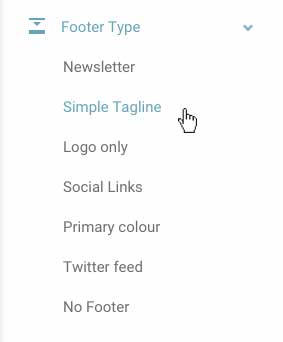 Managing footers works in a similar way to navigation. Add a footer to your page by selecting an option from the 'Footer Styles' dropdown in the sidebar (see figure 5.1.1).