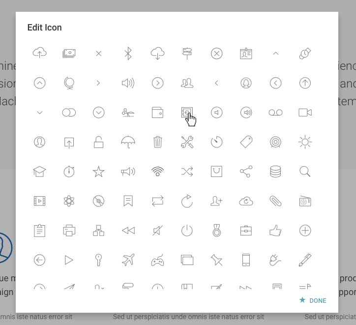To edit an icon, right click on it and select 'Edit Icon' from the context menu (see figure 3.3.1)- the icon chooser panel will appear. From here, select the icon you wish to use and click 'done' (see figure 3.3.2).