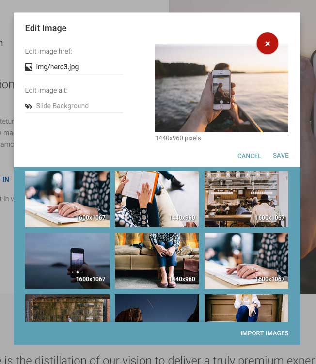 Important Note: Variant looks for your images directly inside the 'img' directory of the template (not the variant/img directory). If you add images that are not contained directly within the 'img' folder, an error will appear over the image prompting you to move the image file to the img folder and click to refresh.