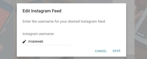 figure 4.1.1 Enter the name of the Instagram user you wish to display and hit 'Save'