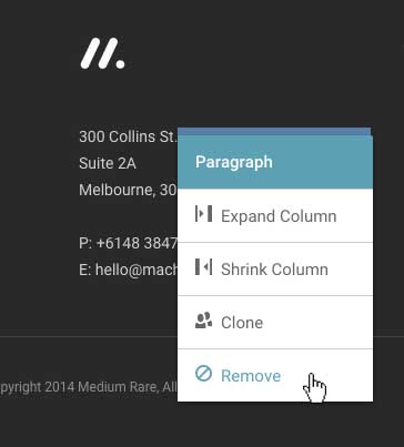 Most elements such as services, pricing tables, text, etc. allow you to edit the column-width. This is especially useful if you have a specific number of elements you want that differs from the original layout. To adjust the width of an element, right click it and select either 'Increase Columns Width' or 'Decrease Column Width' from the context menu as appropriate.