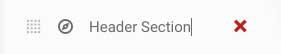 Renaming sections is useful when creating a page that has a 'one page navigation' style. To rename a section, click on its title in the sidebar and change the text (see figure 2.3.1). You will notice that a navigation icon appears when you make this change, this is to signify that this section is now 'linkable' as an inner page navigation option (more on this in section 4.1)